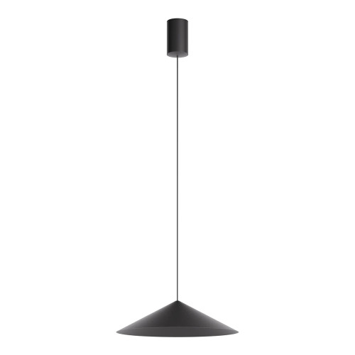 Оригинален светодиоден пендел от серията Konos, изработен от алуминиева основа и конусовидна форма алуминиева шапка в матово черен цвят с вграден 10W 2700K LED. Тялото е с вграден димируем TRIAC драйвер. Модерно решение за комфортното и стилно осветление във вашия хол, трапезария, спалня, хотел и заведение.