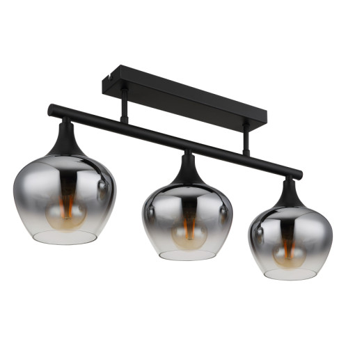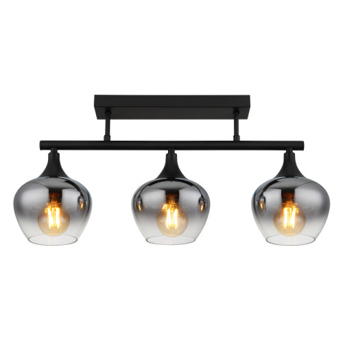 Елегантен плафон с модерен дизайн от серията Maxy, изработен от черен цвят метална основа и три куполовидна форма стъклени чашки в опушен цвят преливащ към прозрачен. Оригинално решение за интериорното осветление във вашия хол, трапезария, спалня, хотел и ресторант.