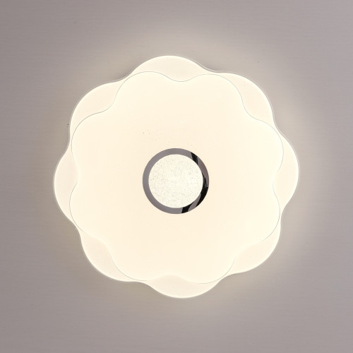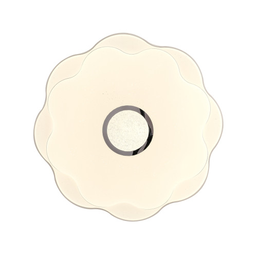 Модерен светодиоден плафон с флорален дизайн от серията Normi, изработен от метална основа и бял цвят пластмасов разсейвател с хромиран декоративен ринг в средата и вграден 24W, 4000K LED. Оригинално решение за качественото осветление на вашия дом, офис, хотел и заведение.