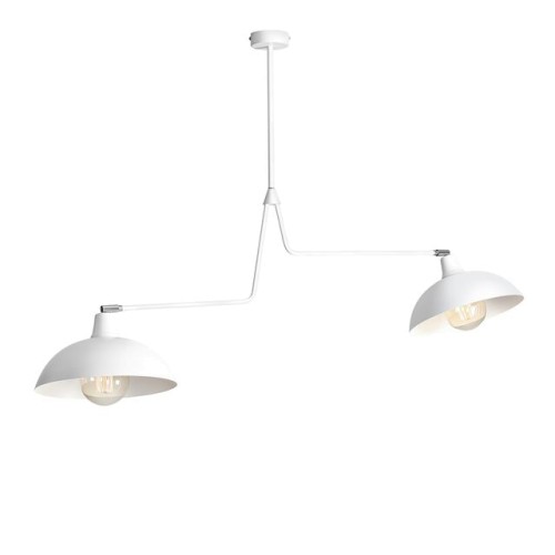 Оригинален полилей с функционален дизайн от серията Espace, изработен от бял мат цвят метална основа с две асиметрични рамена и напълно регулириуеми полусферични метални чашки в бял мат цвят на цокъл Е27. Модерно решение за комфортното и стилно осветление на вашия хол, трапезария, спалня, офис, хотел и заведение.
