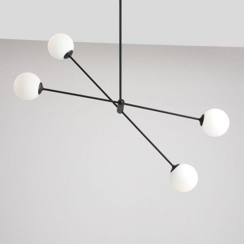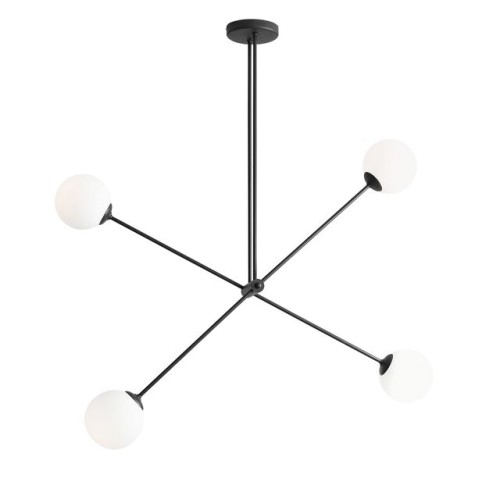 Модерен полилей с елегантен дизайн от серията Ohio, изработен от цвят черен мат метална основа и регулируеми рамена с четири бял мат сферични стъклени чашки на цокъл Е14. Чудесно предложение за комфортното осветление на вашия хол, трапезария, спалня, хотел и заведение.