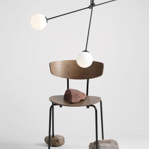 Елегантен полилей от серията Holm, изработен от черен мат метална основа с подвижни прави рамена и д..