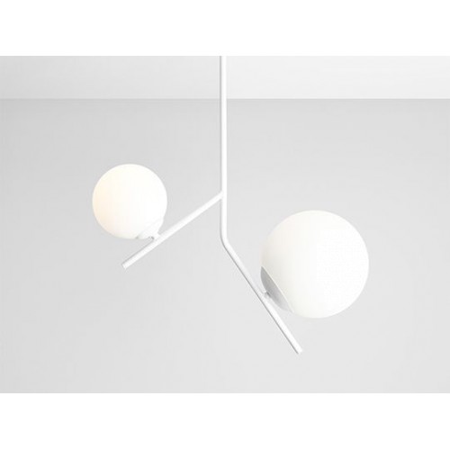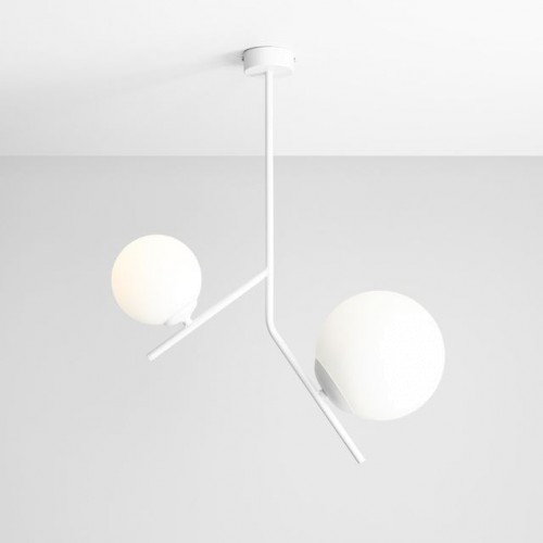 Оригинален полилей с модерен дизайн от серията Gallia, изработен от бял цвят метална основа и рамена с две матово бял цвят сферични стъклени чашки на цокъл Е27 и Е14. Стилно решение за комфортно осветление на вашия хол, трапезария, спалня, хотел и заведение.