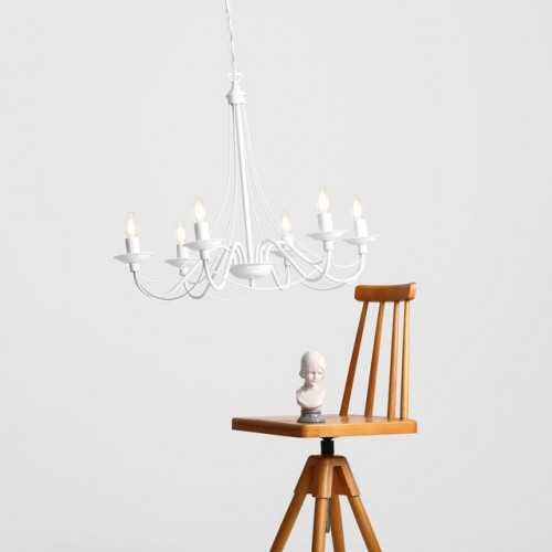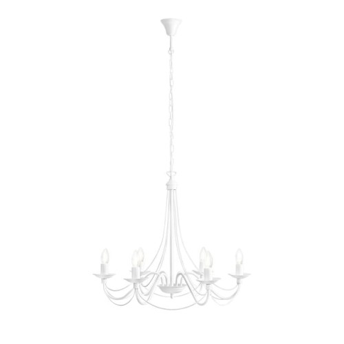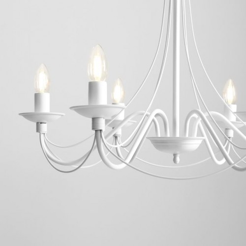 Класически полилей със стилен дизайн от серията Roza, изработен от бял цвят метално тяло с елегантно извити шест метални рамена на цокъл Е14. Великолепно предложение за изисканото осветление на вашия хол, трапезария, хотел и заведение.