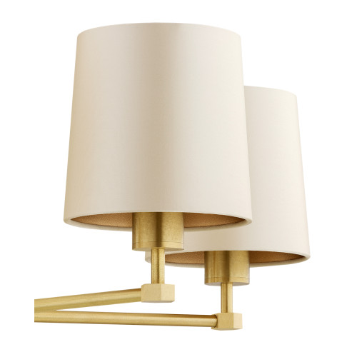 Класически полилей със стилен дизайн от серията Princeton, изработен от месингово тяло с прави рамена и пет текстилни шапки в бежов цвят отвън и златист във вътрешността. Великолепна лампа, подходяща комфортното и изискано осветление на вашия хол, трапезария, спалня, фоайе, хотел и заведение.