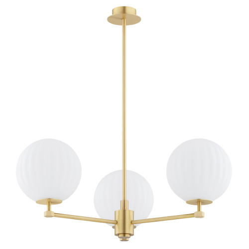 Стилен полилей от серията Paloma, изработен от месингова основа с три прави рамена и сферична форма чашки от опал мат набраздено стъкло. Изискано предложение за качественото и комфортно осветление на вашия хол, трапезария, спалня, хотел и ресторант.