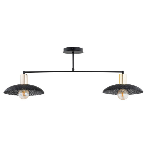 Модерен полилей в стил лофт от серията Spirit, изработен от черен цвят метална основа и две полусферични перфорирани метални чашки със златисти метални елементи. Стилно предложение за интериорното осветление във вашия хол, трапезария, спалня, хотел и заведение.