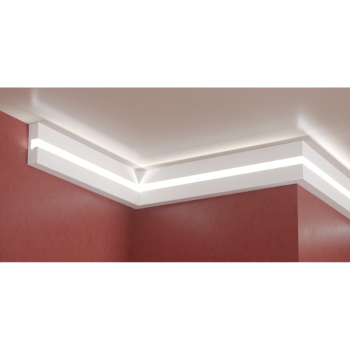 Профилът е произведен по собствената технология LightCoreX™, разработена от ADORN за архитектурни LED решения с високи изисквания към точността. Благодарение на оптимизираното XPS ядро, профилът не се деформира и осигурява равномерно, контролирано светлинно разпределение, без отблясъци и без видими LED точки., създава изключителен и иновативен ефект в интериора. Произведен е от XPS ( фибран) или така наречения екструдиран пенополистирол. При втърдяването на XPS се получава хомогенна пяна с микроскопични затворени въздушни джобчета, което го прави много лек, здрав и същевременно водоустойчив и много удобен за монтаж. За монтажа има няколко изисквания: залепянето за стената да се прави с монтажно лепило( без разтворител); шпаклова се с гипсово лепило на фугата между два профила( около 5 см.); боядисването е задължително - като се използва боя на водна основа или латекс. Препоръчва да се монтира Г-образен алуминиев профил в канала предварително, като цената е: 3.50 EUR. с ДДС/ за 2 метра. Профилът за скрито осветление се предлага на парче от 2м. ,цената в сайта е за 2м. Няма включена светодиодна лента в комплекта. Профилът е подходящ за осветление във вашия хол, трапезария, спалня, хотел и ресторант.