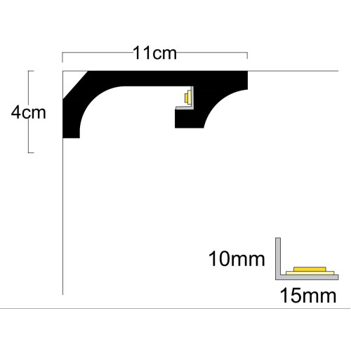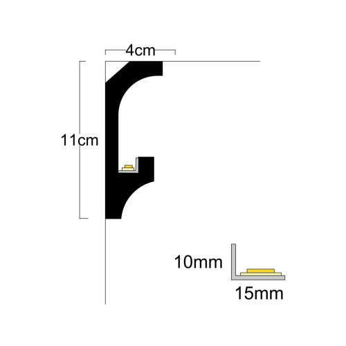 Изработен от висококачествен XPS материал с ниско тегло, профилът е изключително удобен за монтаж и е проектиран като компактен архитектурен профил с фина геометрия, подходящ за създаване на деликатни и прецизни светлинни линии.