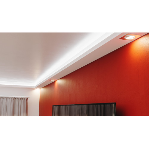 Профилът за корниз модел LD-19, създава изключителен и иновативен ефект в интериора, светещ с монтаж..