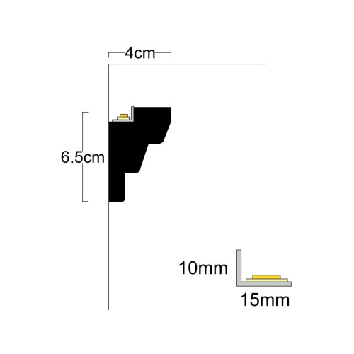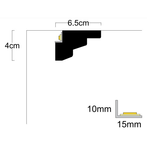 Създава изключителен и иновативен ефект в интериора. Произведен е от XPS ( фибран) или така наречения екстрадиран пенополистирол. При втърдяването на XPS се получава хомогенна пяна с микроскопични затворени въздушни джобчета, което го прави много лек, здрав и същевременно водоустойчив и много удобен за монтаж. За монтажа има няколко изисквания: залепянето за стената да се прави с монтажно лепило( без разтворител); шпаклова се с гипсово лепило на фугата между два профила( около 5 см.); боядисването е задължително - като се използва боя на водна основа или латекс. Препоръчва да се монтира Г-образен алуминиев профил в канала предварително, като цената е: 3.50 EUR с ДДС/ за 2 метра. Профилът за скрито осветление се предлага на парче от 2м. , цената в сайта е за 2м. Няма включена светодиодна лента в комплекта. Профилът е подходящ за осветление във вашия хол, трапезария, спалня, хотел и ресторант.