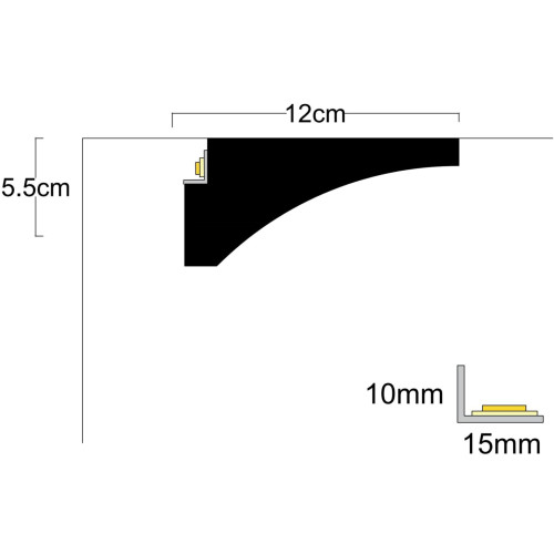 Профилът за пред перде за светодиодно осветление модел P-05 е архитектурен LED профил за пердета на ..