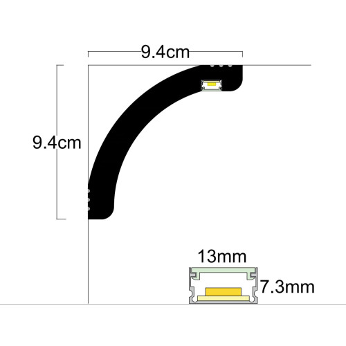Профилът е произведен по собствената технология LightCoreX™, разработена от ADORN за архитектурни LED решения с високи изисквания към точността. Благодарение на оптимизираното XPS ядро, профилът не се деформира и осигурява равномерно, контролирано светлинно разпределение, без отблясъци.