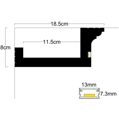 Профилът за пред перде за светодиодно осветление модел P-06 е архитектурен LED профил за пердета на ..