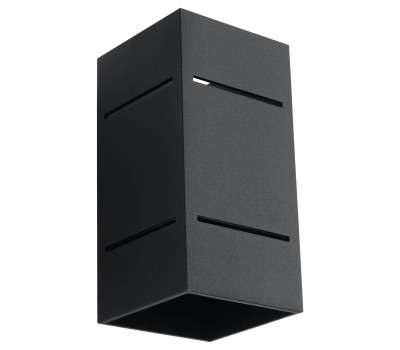 Модерен аплик с оригинален дизайн от серията Blocco, изработен от черен цвят правоъгълно алуминиево тяло с хоризонтални прорези и индиректно разпръскване на светлината. Стилна лампа, подходяща за комфортното осветление във вашия хол, трапезария, спалня, коридор, офис, хотел и заведение.