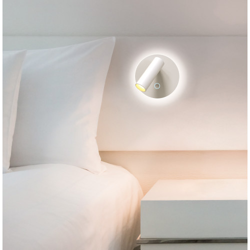 Функционален светодиоден аплик от серията Nevada, изработен от бял цвят кръгла метална основа с вграден димер ключ с докосване и подвижна цилиндрична метална глава с вграден 10W, 3000K LED. Модерна лампа, подходяща за осветление във вашата спалня, хол, хотел и заведение.