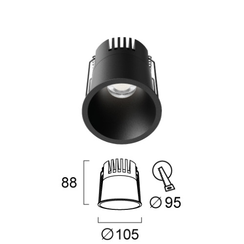 Стилна светодиодна луна за вграждане от серията Dylan, изработена от черен цвят кръгло алуминиево тяло, вдлъбнато навътре с ъгъл на разпръскване на светлината: 36º и мощност: 19W, LED с възможност за избор на цветната температура: 2700K/4200K/6500K чрез превключвател. Тялото е с включен led драйвер. Модерно предложение за интериорното осветление във вашия дом, офис, хотел и заведение.